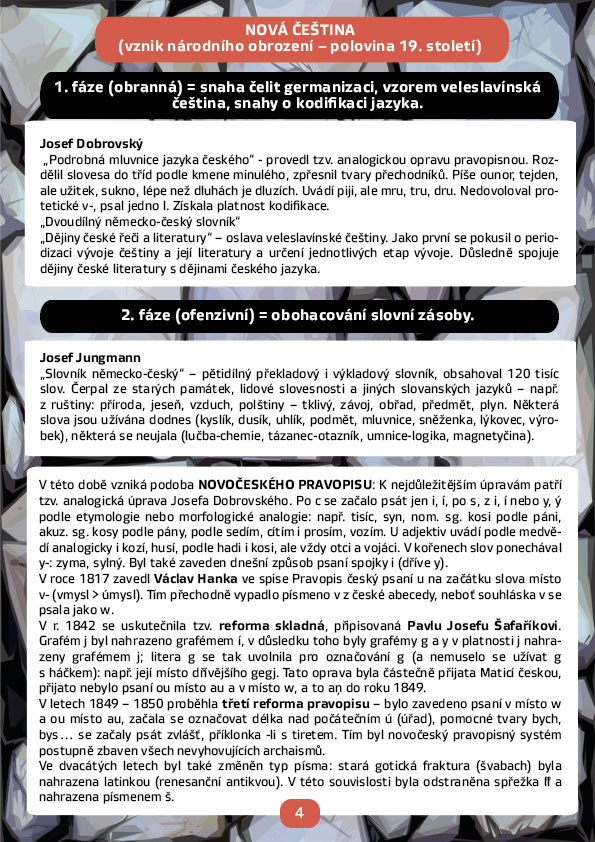 • 4) Nová čeština (od vzniku národního obrození po současnost)